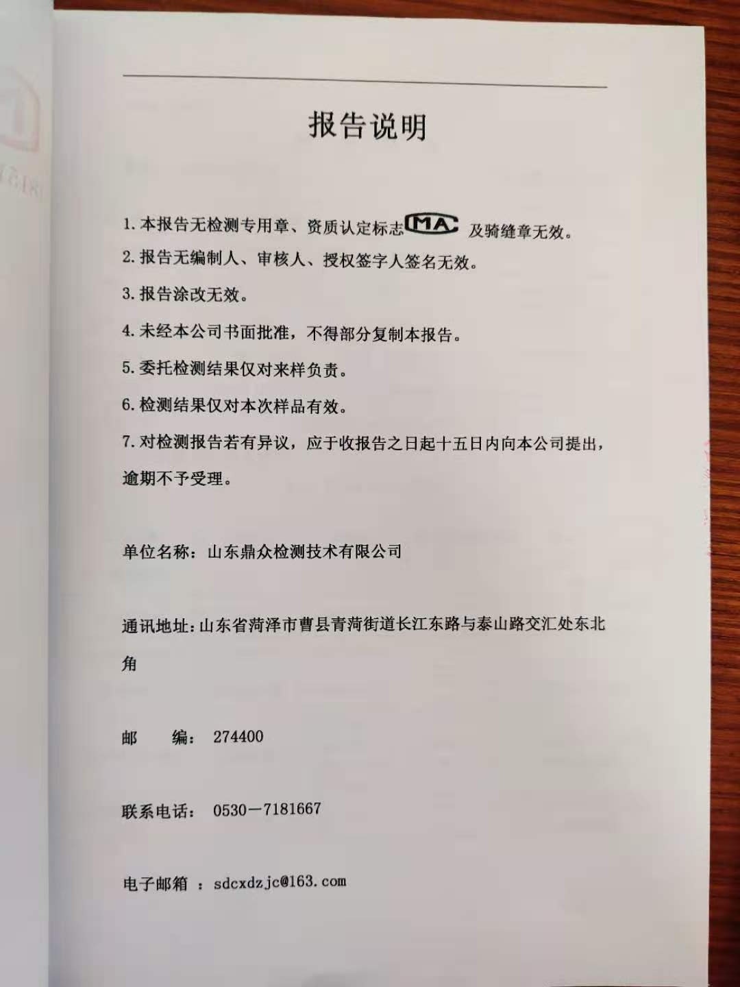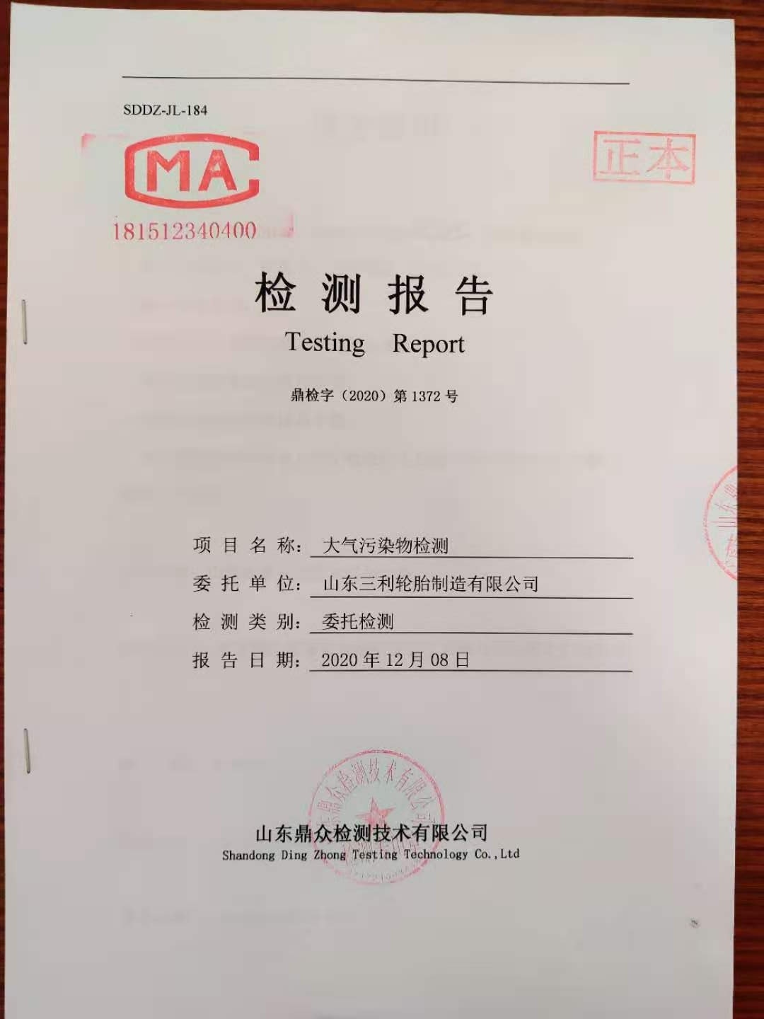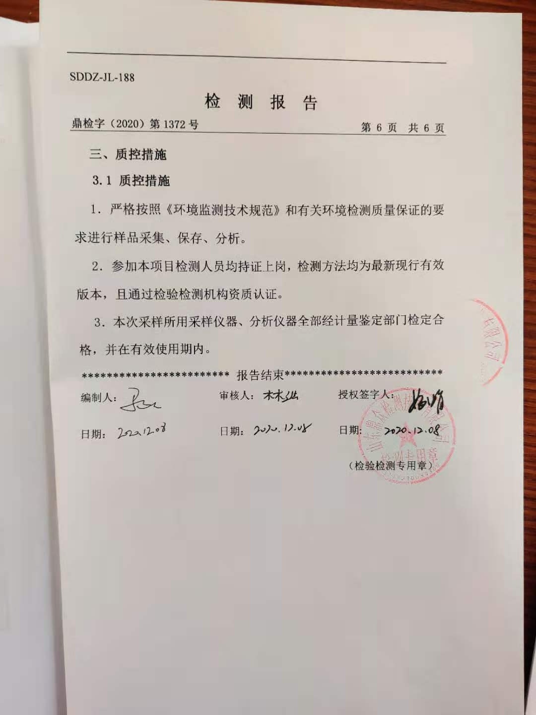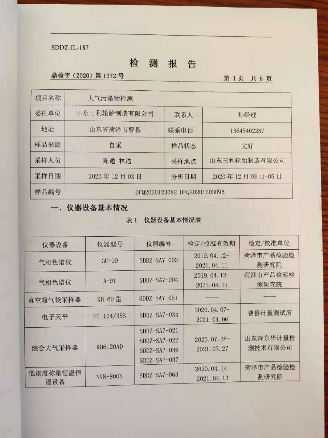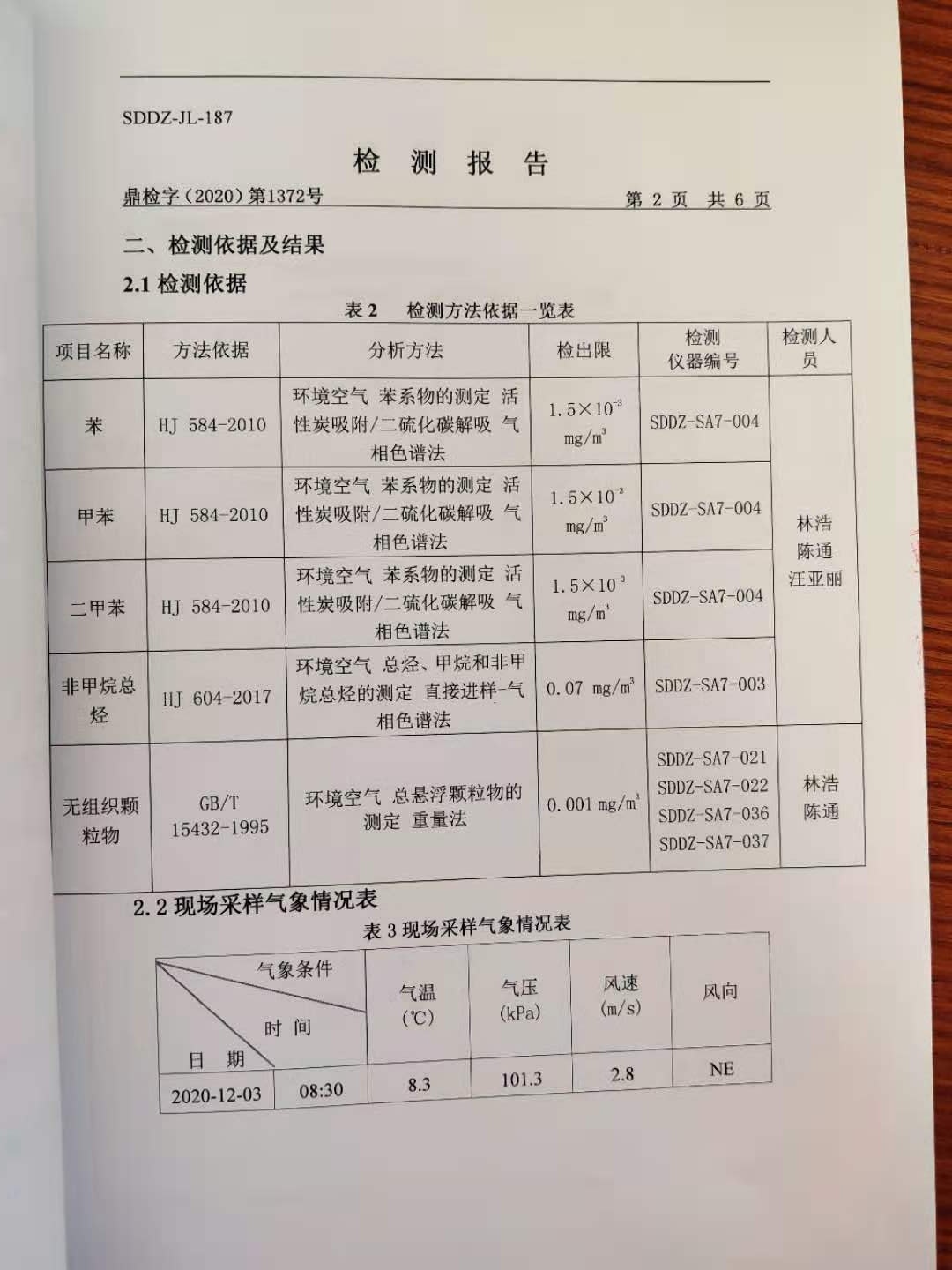 大气污染物检测报告
