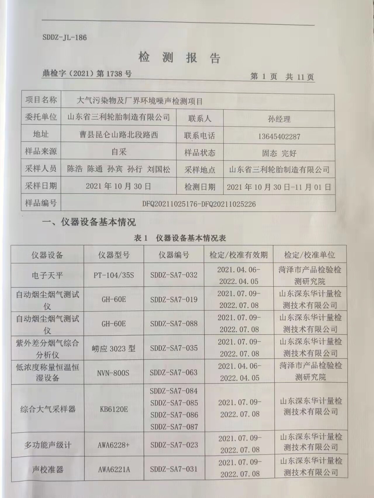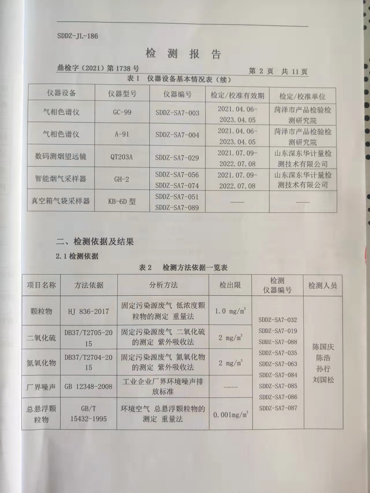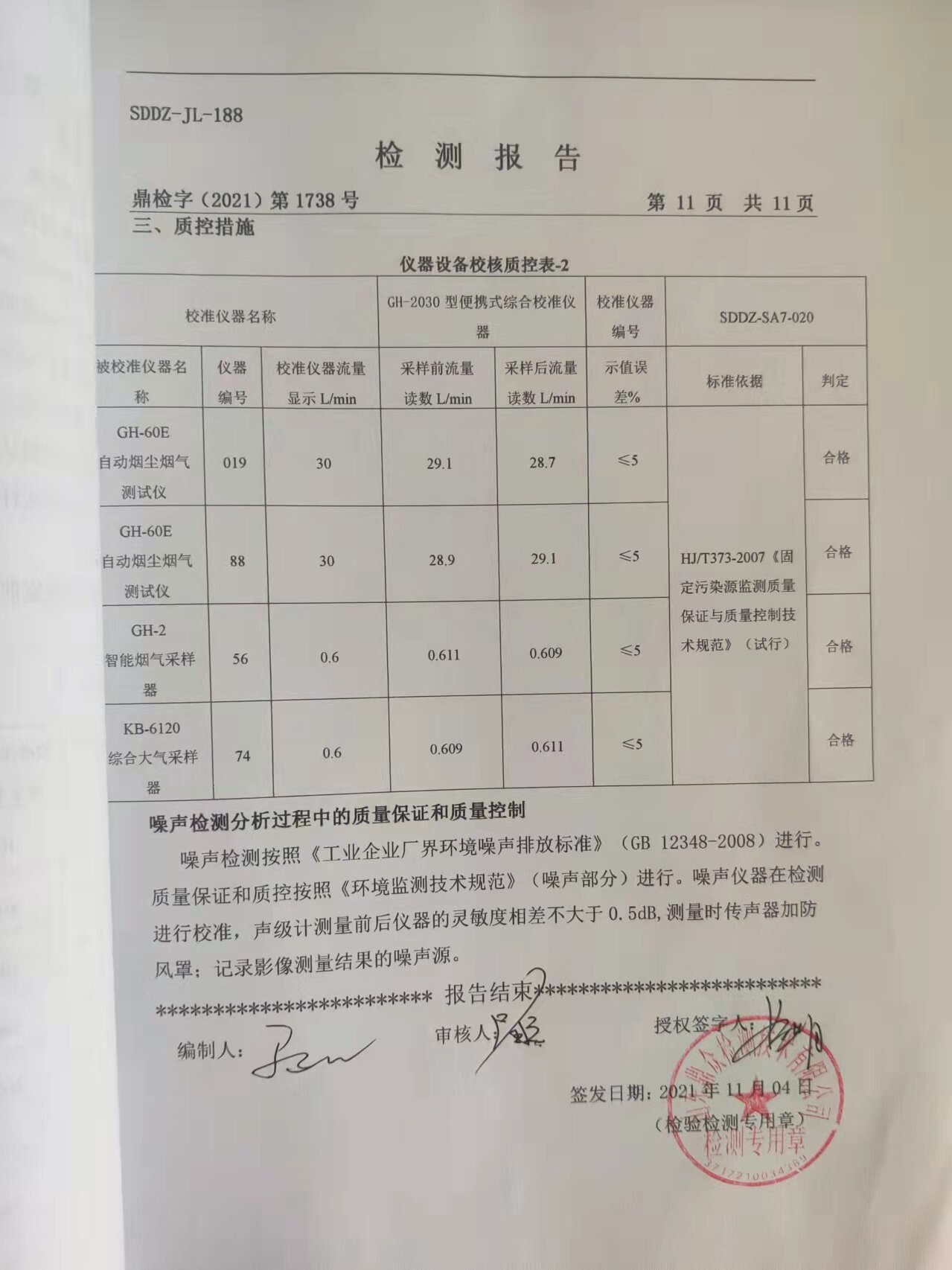 2021年大气污染物及厂界情形噪声检测报告