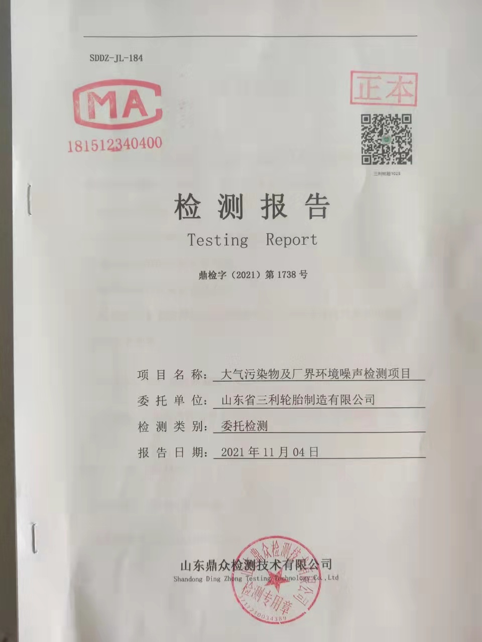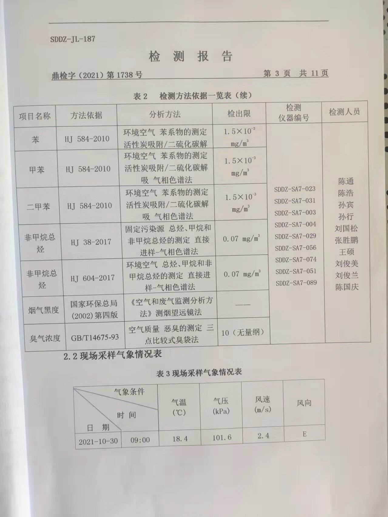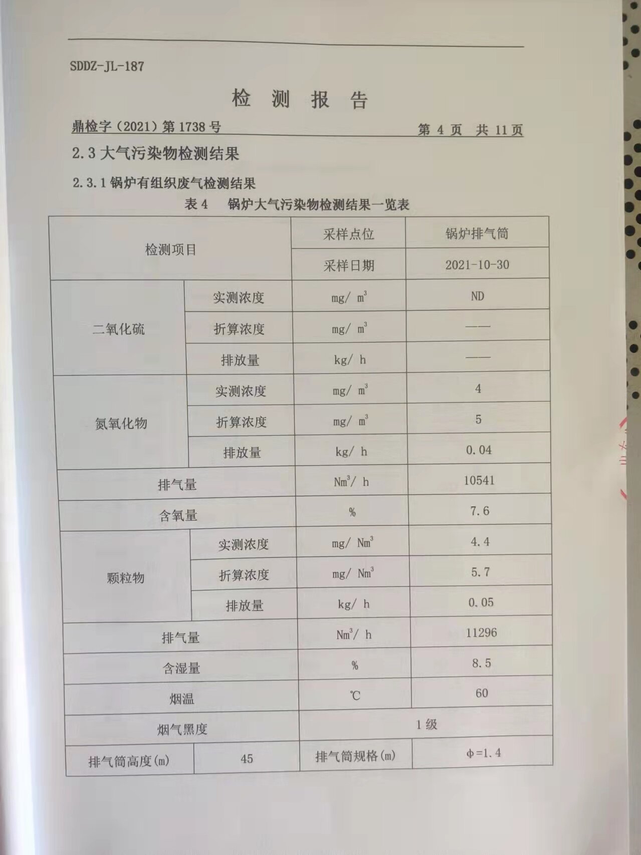 2021年大气污染物及厂界情形噪声检测报告